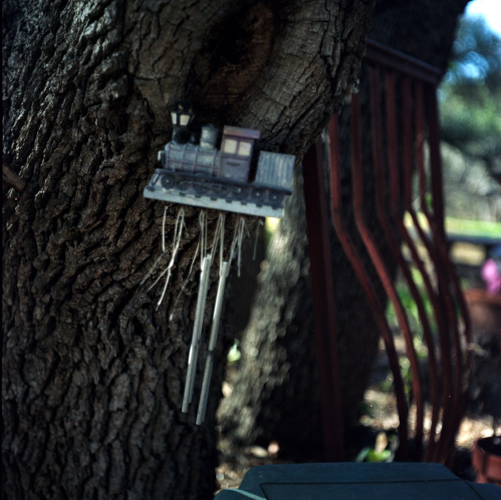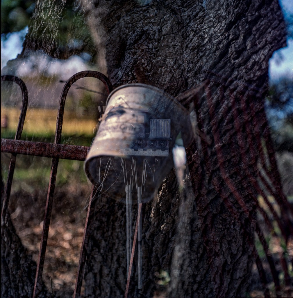 I cleaned up some of the flaws on the film (developer spots) and did little else to edit these pictures. The camera functioned flawlessly. It’s my lightest medium format camera; it’s very easy to carry and focus. I had a mistake where I got one double exposure when I cocked the shutter without winding the film. The camera has a switch to prevent doubles, but I kind of like the result.